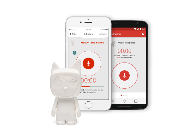 Mit der dazugehörigen, kostenlosen Smartphone-App können eigene Sprachaufnahmen aufgezeichnet und dem Kreativ-Tonie zugewiesen werden.
